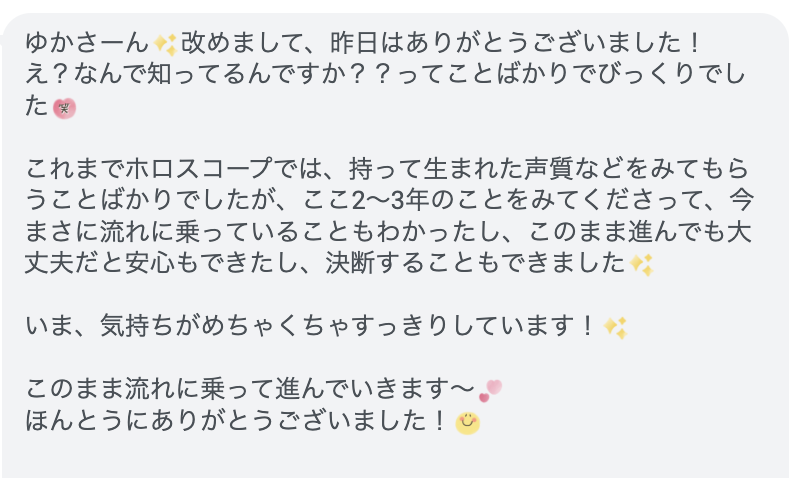 もし、コーチングを受けてなかったら、まだ迷いの中にいて、今の彼にも出会えていなかったと思います。