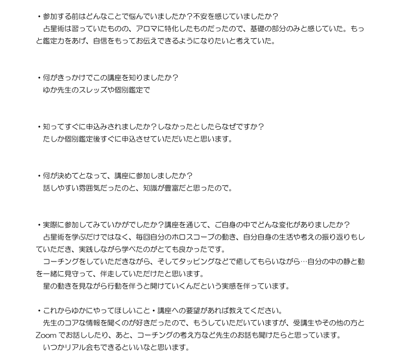 Q&A 個別 西洋占星術マスター講座 よくあるご質問